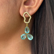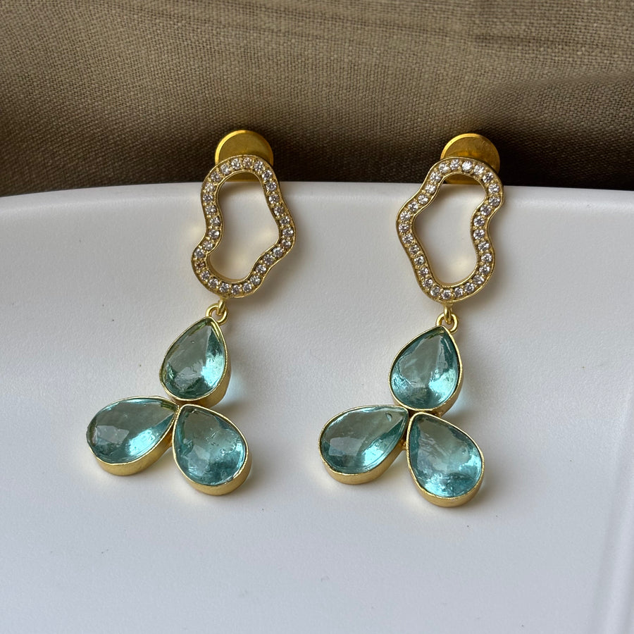 Abstract shaped fashion earrings with blue stone hanging made out of bras