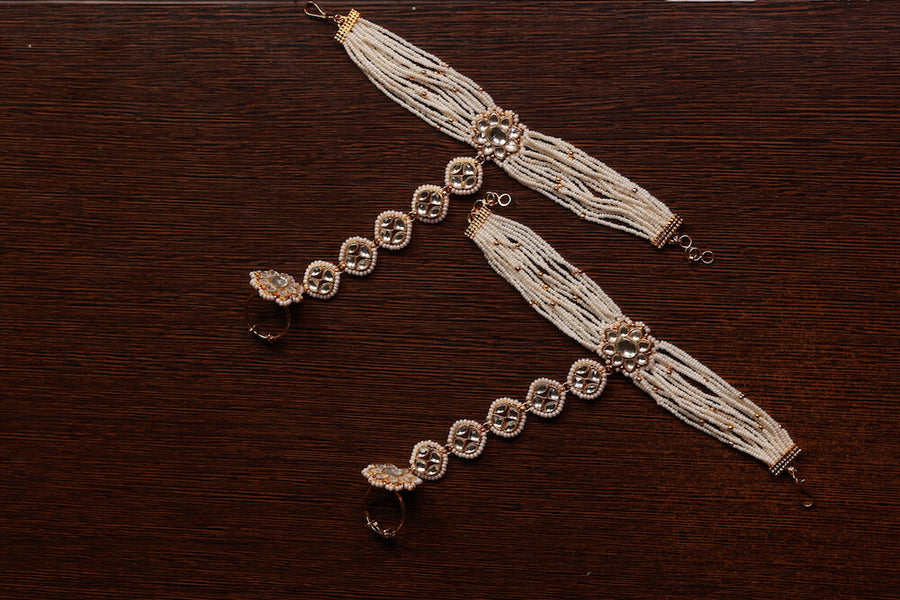 White Jadau Kundan Haath Pocha