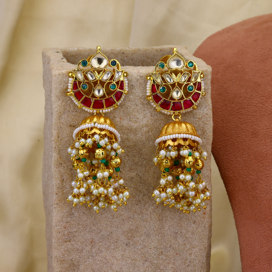 Dodibaksa Jadau kundan jewellery is set in alloy with real Kundan stones in silver foil setting dipped in 18kt gold plating, finished in precious/semi-precious and natural gemstone