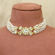 Plain white khaki jadau chocker deviate necklace with a pair of studs