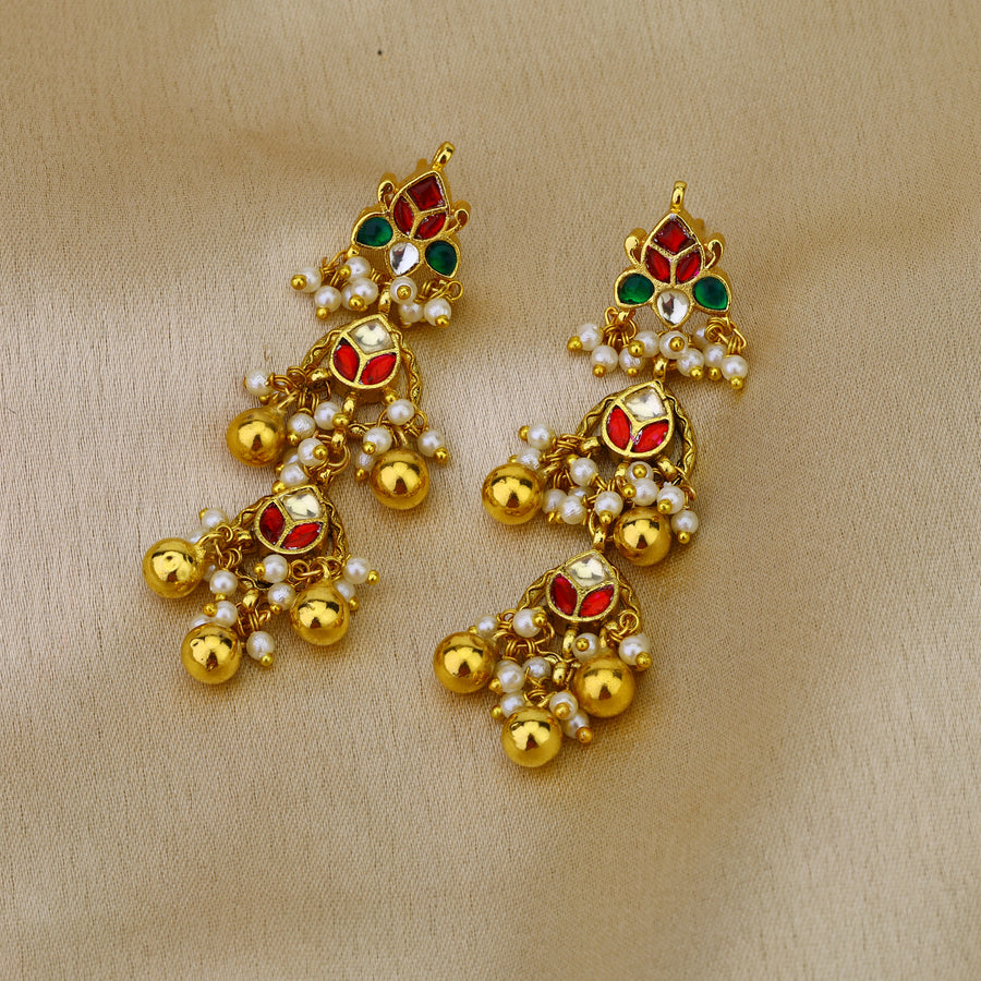 Multi colour minimal jadau Kundan earrings with golden ball hangings