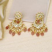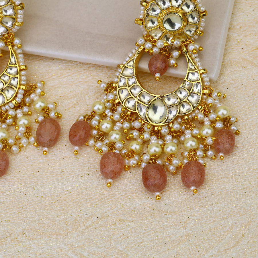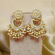 White Jadau  Medium Size Earrings With Baby Pink Hangings