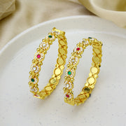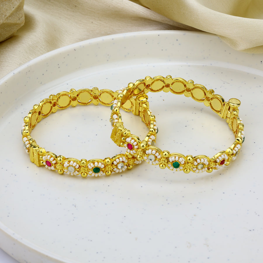 Pink and green jadau Kundan delicate kada surrounding Perl