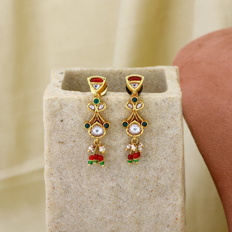 Dodibaksa Jadau kundan jewellery is set in alloy with real Kundan stones in silver foil setting dipped in 18kt gold plating, finished in precious/semi-precious and natural gemstone -