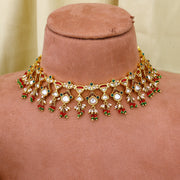 Pink and green delicate Kundan choker with a pair of sleek earrings