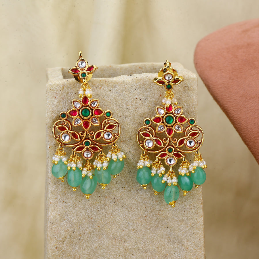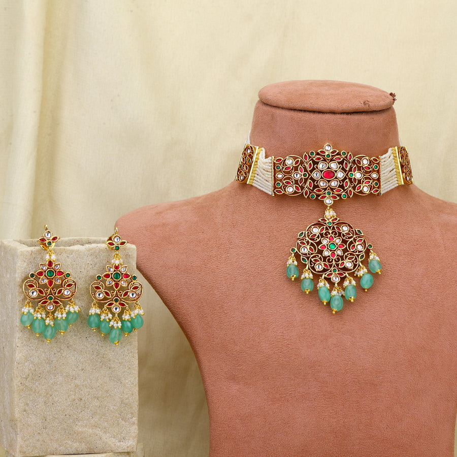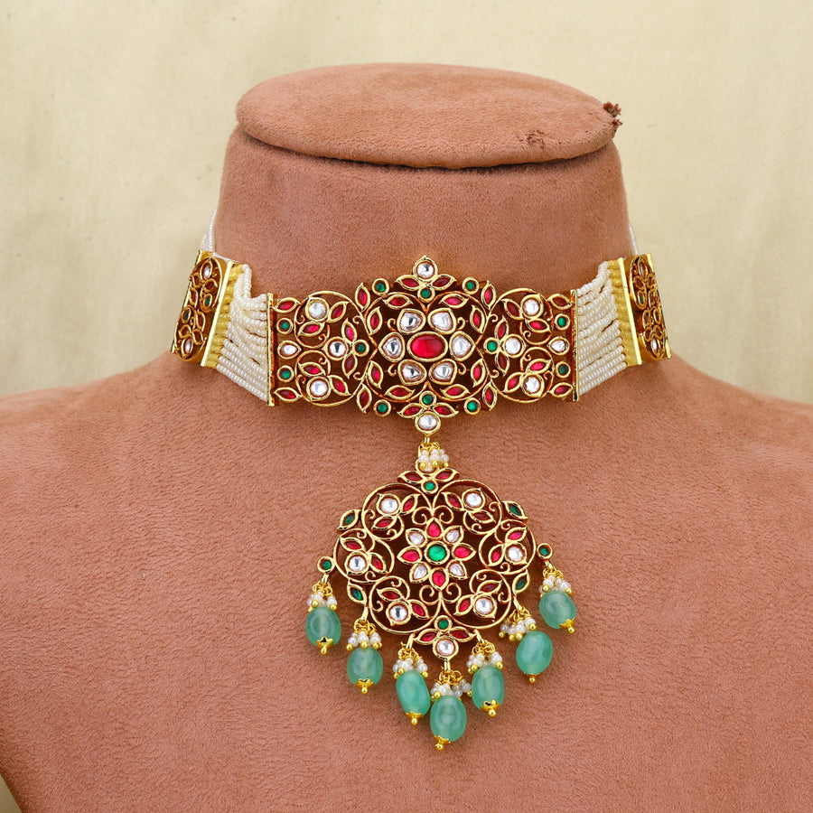 Dodibaksa Jadau kundan jewellery is set in alloy with real Kundan stones in silver foil setting dipped in 18kt gold plating, finished in precious/semi-precious and natural gemstone -