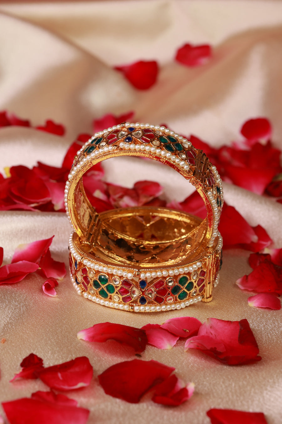 Dodibaksa Jadau kundan jewellery is set in alloy with real Kundan stones in silver foil setting dipped in 18kt gold plating, finished in precious/semi-precious and natural gemstone