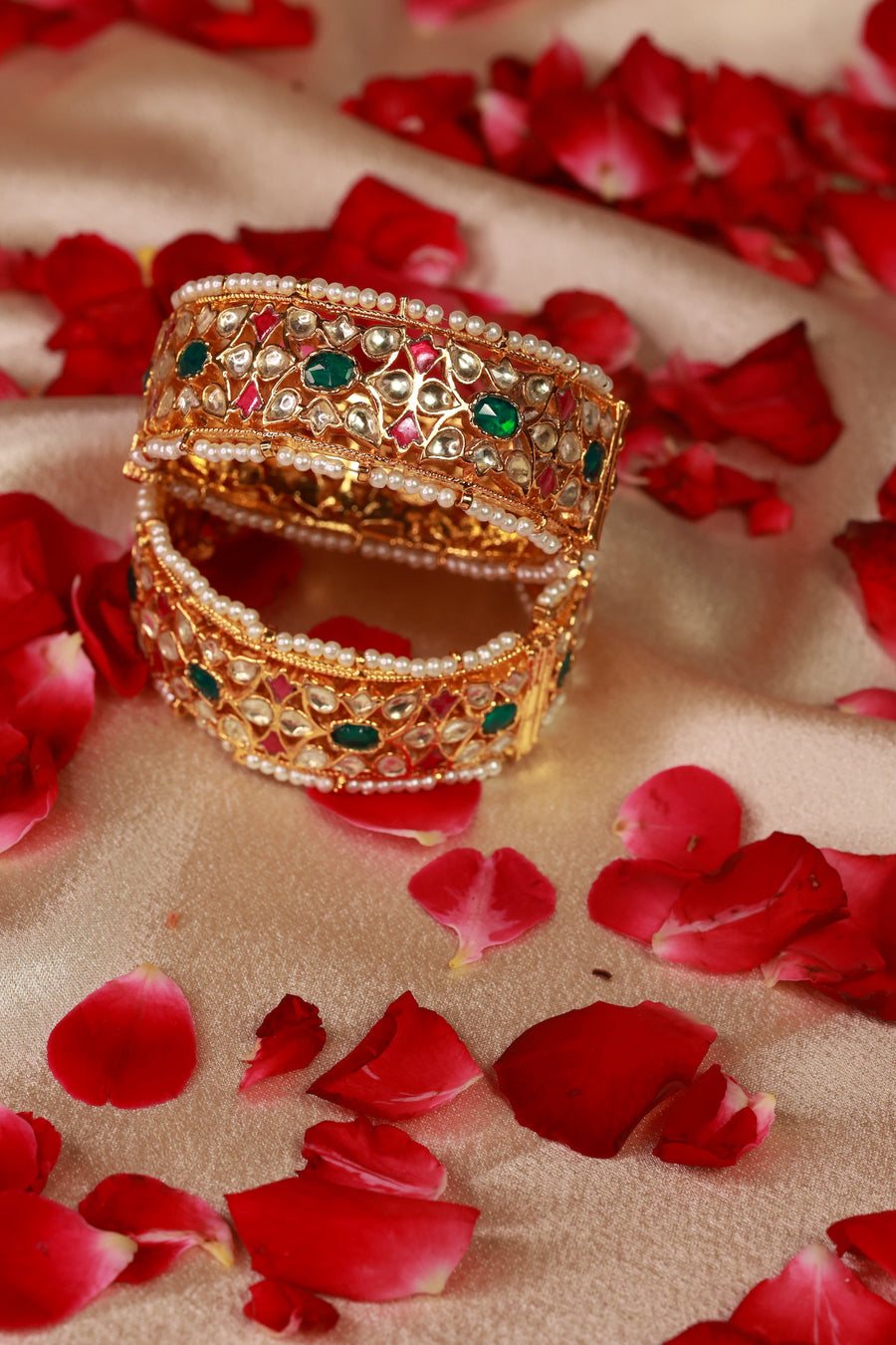 Dodibaksa Jadau kundan jewellery is set in alloy with real Kundan stones in silver foil setting dipped in 18kt gold plating, finished in precious/semi-precious and natural gemstone -