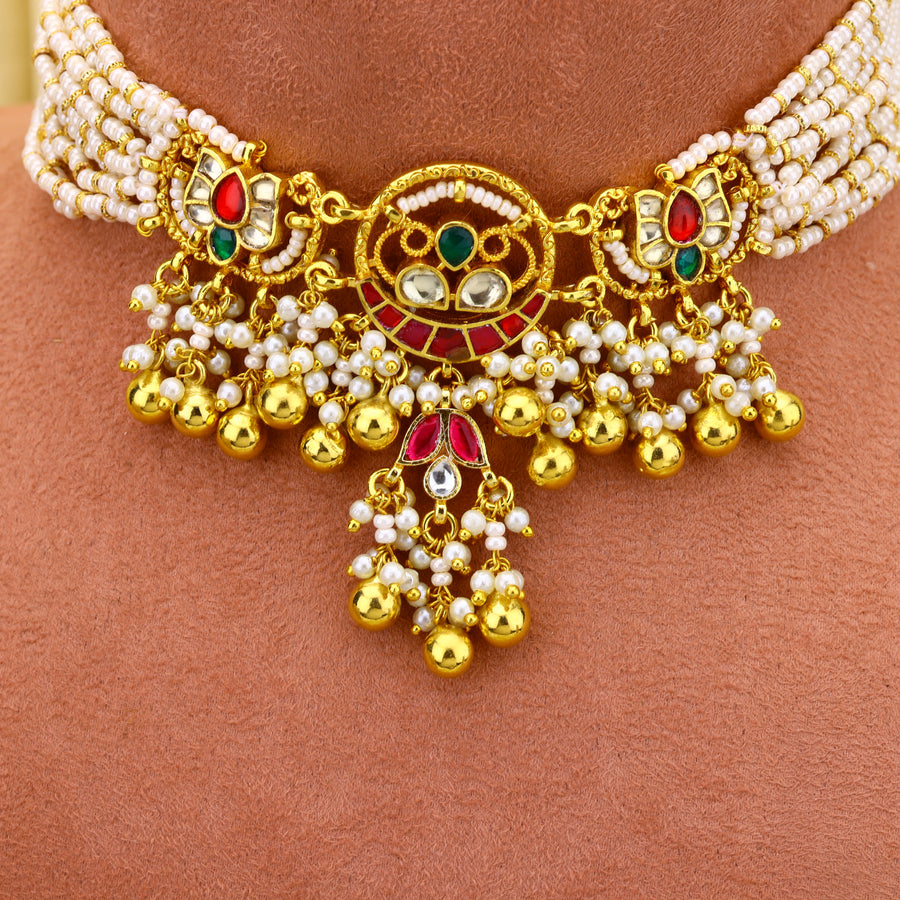 Dodibaksa Jadau kundan jewellery is set in alloy with real Kundan stones in silver foil setting dipped in 18kt gold plating, finish in precious/semi precious and natural gemstone -