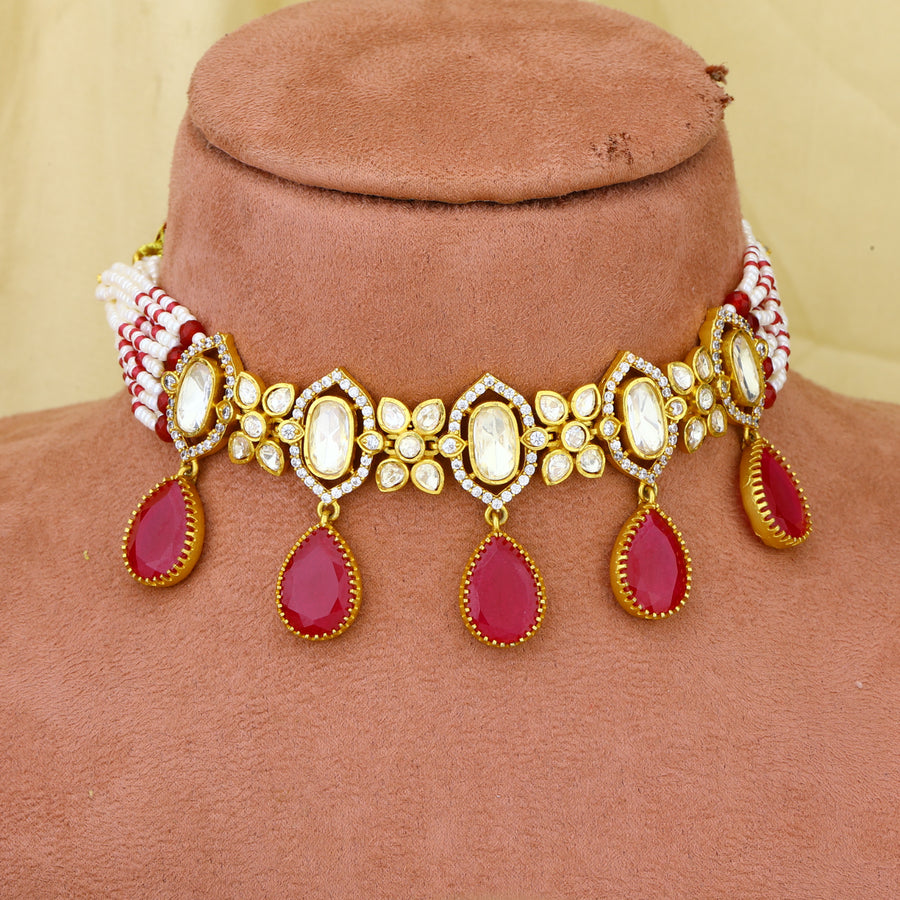 Pink uncut polki moissnaite  chocker with pink stone drops