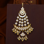 White Jadau Chand Shaped Pada With Golden Hangings