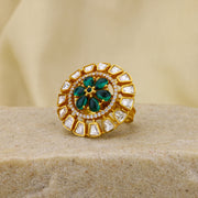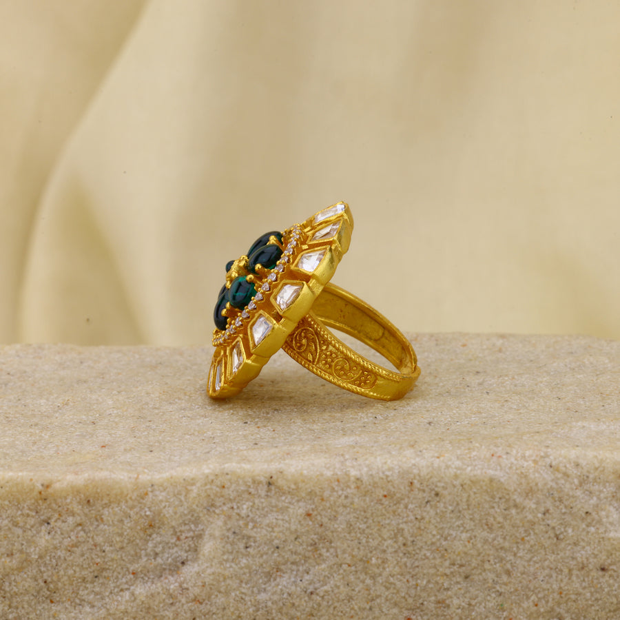 Emerald uncut polki moissanite round-shaped ring