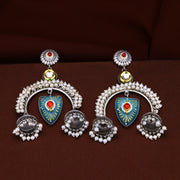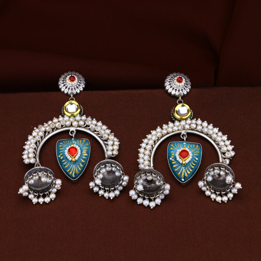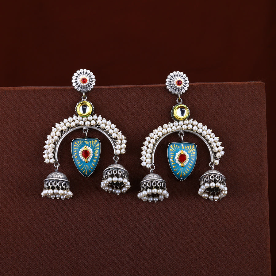 Contains: One pair of earringsDodibaksa vilay collection celebrates the significance of old traditional designs with a mixture of modern touch and high-quality finished jewellery, jewellery that stands out as a beautiful fusion of German silver and jadau Kundan